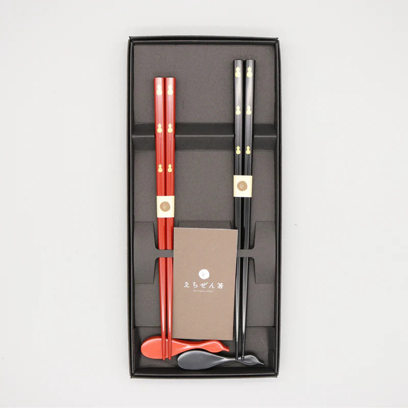 津軽塗 | 夫婦箸・箸置セット 唐塗 | 梨黒 | 小林漆器