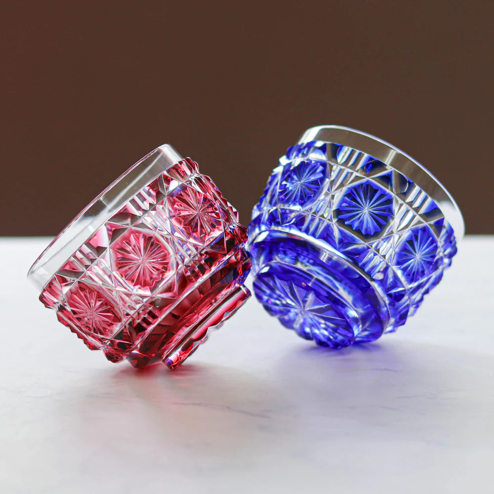 江戸切子 ぐい呑み|水玉万華鏡|赤|山田硝子