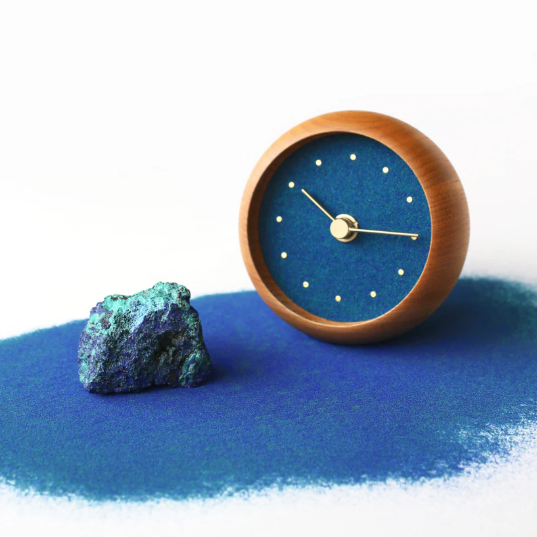 「時計は時間を伝えるもの」だと決めつけるには惜しい、そんな時計があります。フレームは山中漆器の技術であるろくろ引きで作られたもの。文字盤は、金沢市二俣町で作られる手漉き和紙をベースに、天然石を砕いて作られる岩絵具を塗り重ねており、インデックスには金箔を使用しています。(>シーブレーンのページへ)