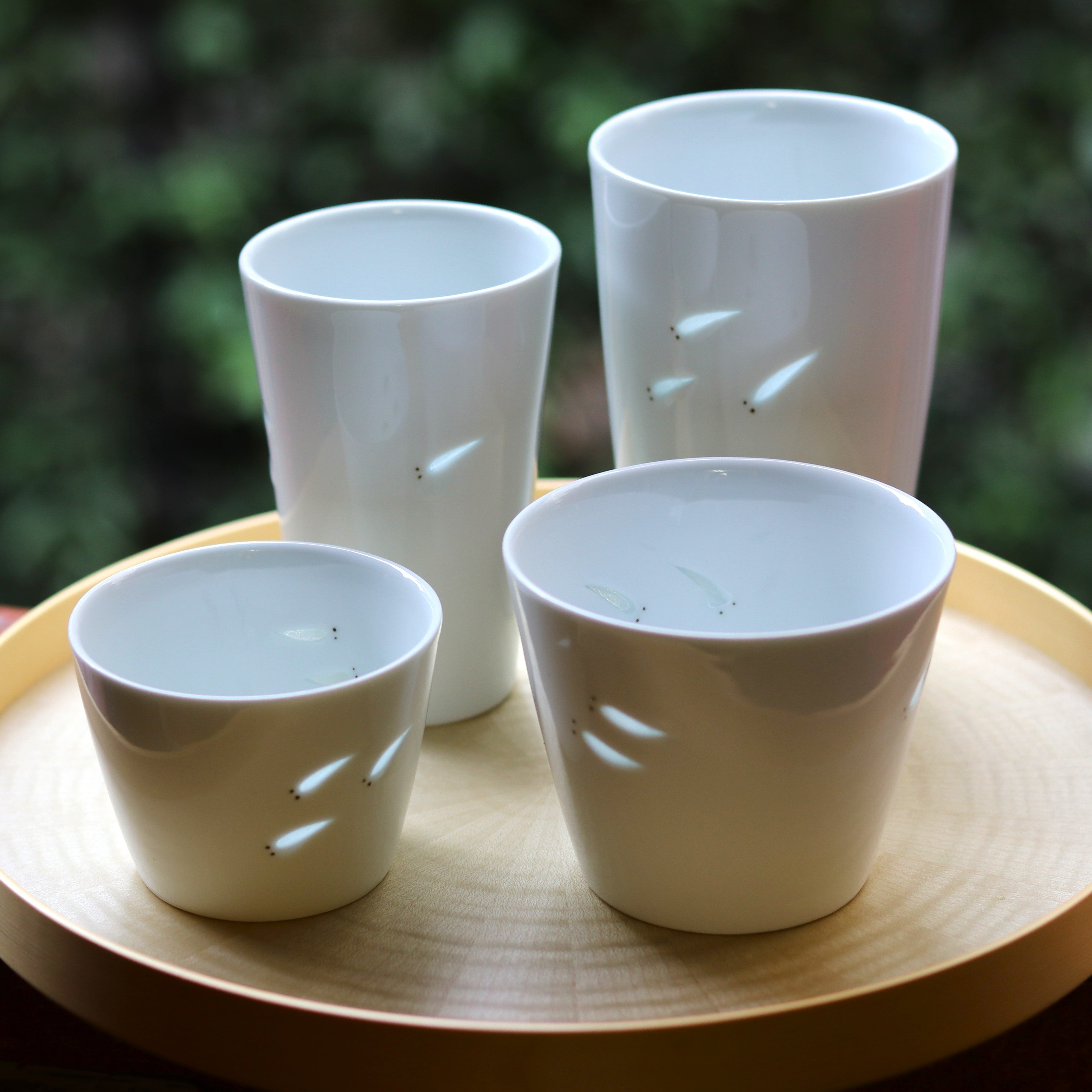 透かし彫りに透明な釉薬を埋め込んだ「ほたる手」という波佐見焼ならではの伝統的な技法を使用しています。 シンプルで日常使いしやすい形の器に、可愛らしいめだかが泳いでいるかのようにデザインされています。