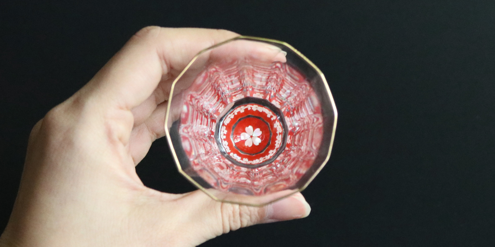 江戸切子 ぐい呑み|桜 - 花切子- |青藍|山田硝子