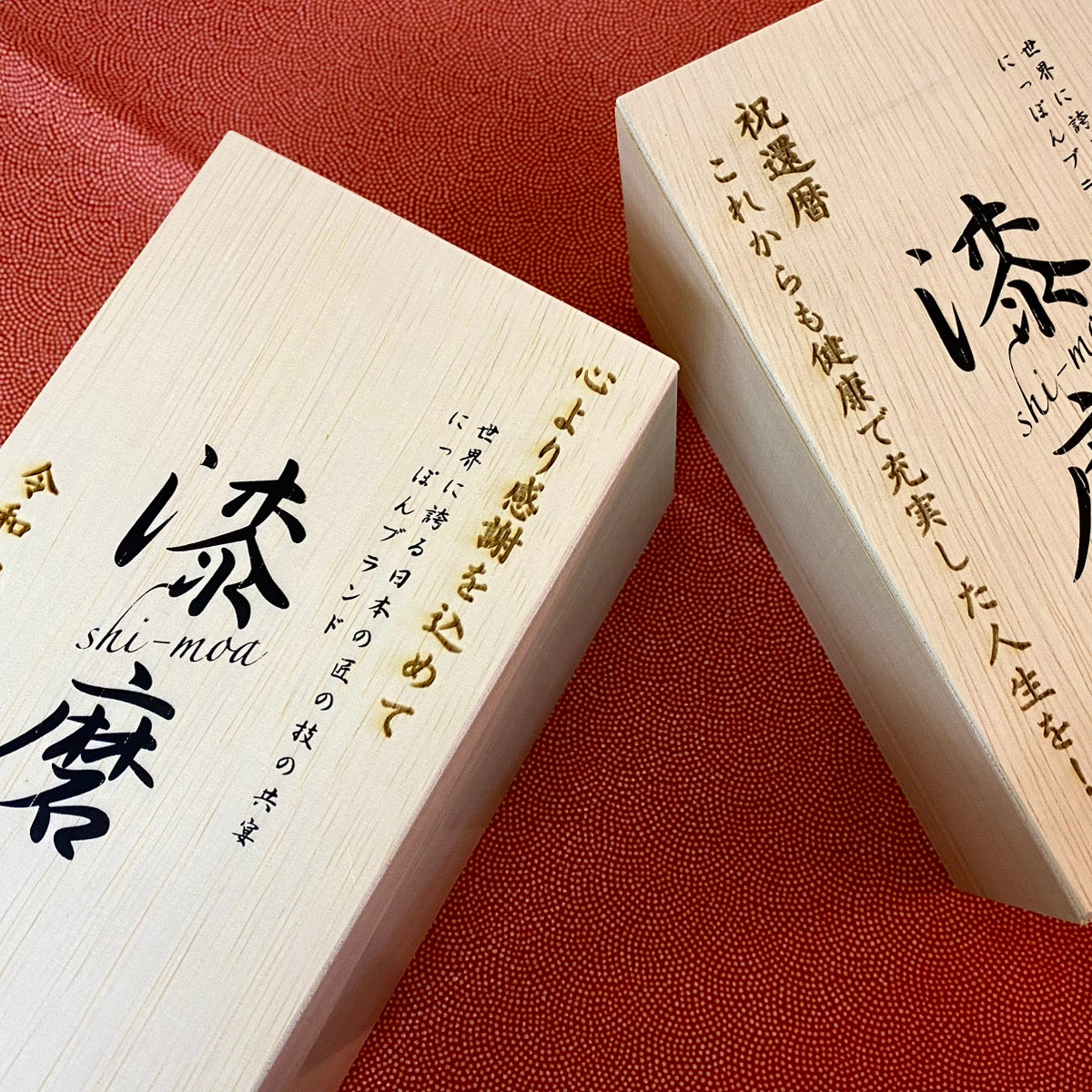 「感謝」「ご退職おめでとうございます」「○○さん、お世話になりました」など、木箱入りのお品物には文字入れが可能です。