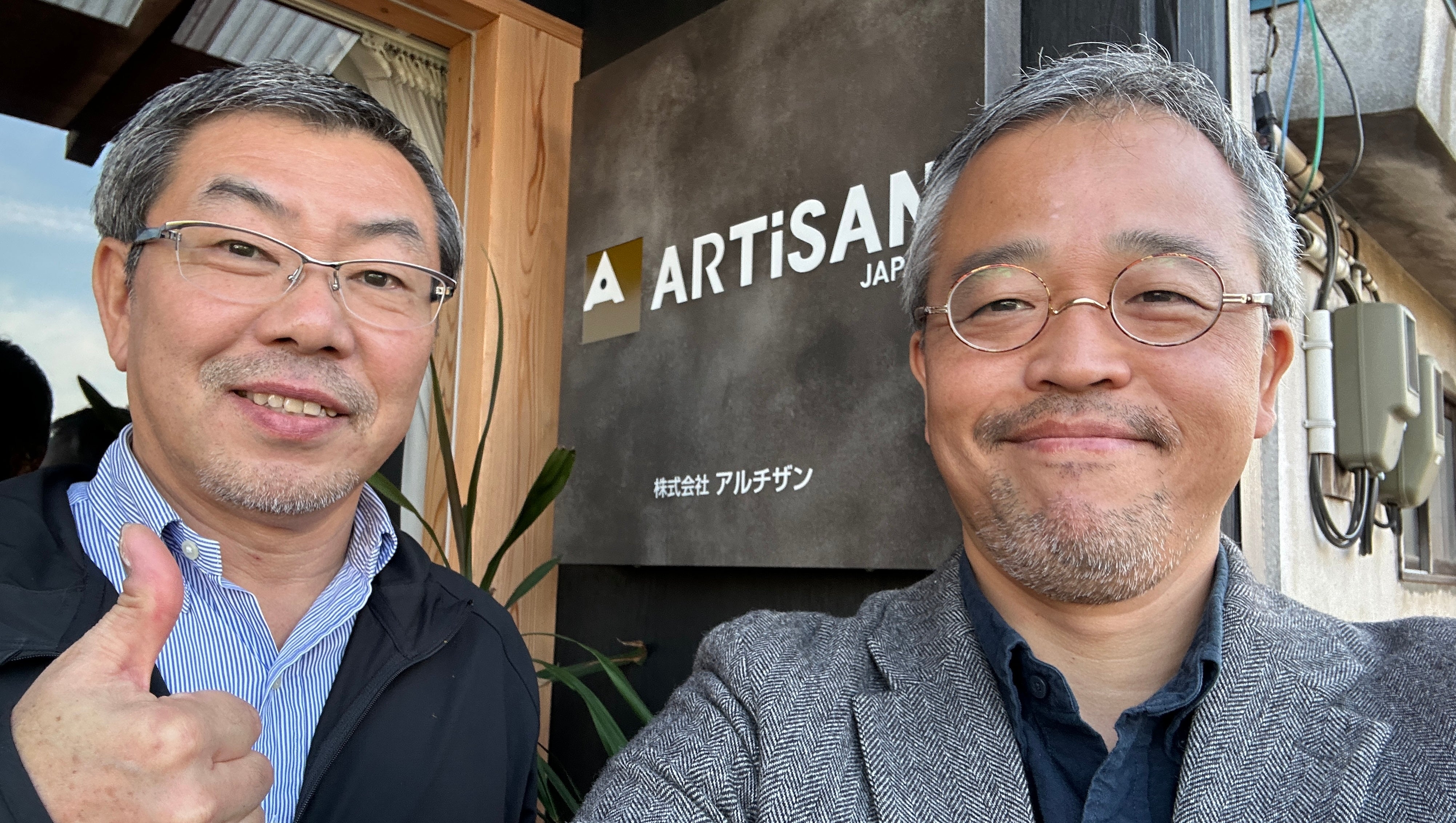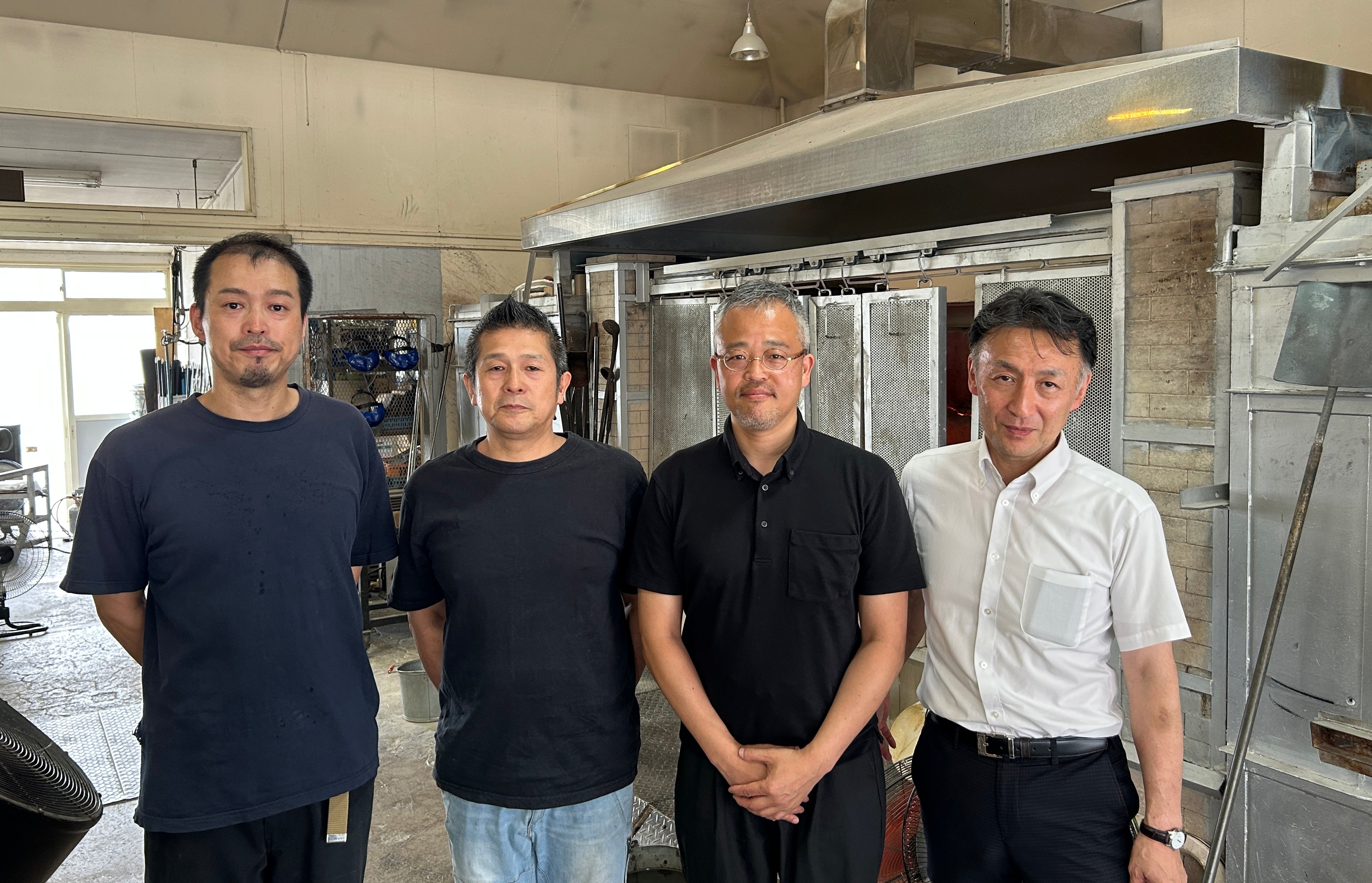 工房や販売所を複数回訪問し、鋳造工程の視察や商談を通してお話を伺いました。(撮影:工房・販売所前にて)