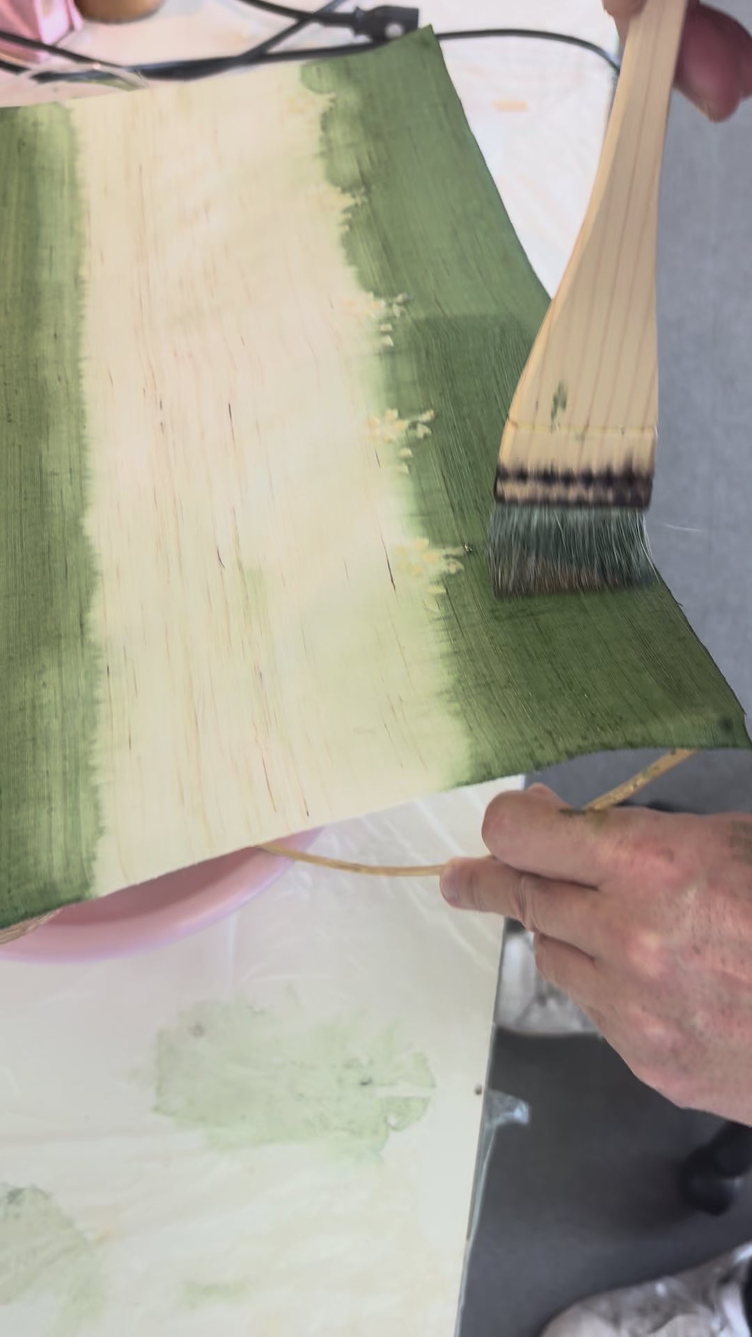まず生地を張り木と伸子で均一に張り、染料を含ませた刷毛を一方向に素早く引き、むらのないよう丁寧に色をのせていきます。刷毛の動きや力加減ひとつで表情が変わるため、職人の経験が試される工程です。
